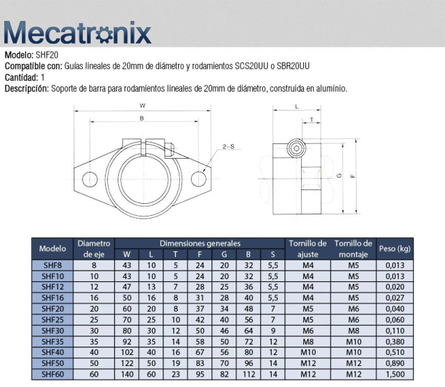 Descripción: Soporte para barras redondas de 20mm con agarre